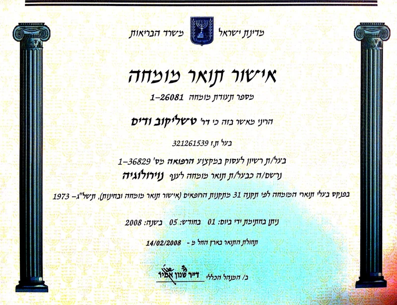 Член израильского Общества нейромодуляции Израиля