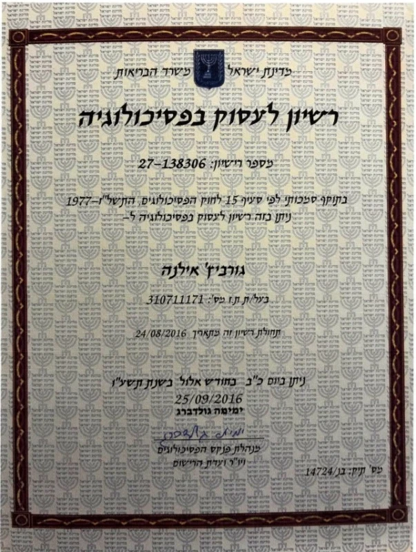 Илана Гуревич - специалист по гипнотерапии, медицинский психолог, специалист в области лечения ПТСР, психоонколог, ведущий специалист по биофидбек, психотерапевт. Практикует краткосрочные методики психотерапии, направленные на быстрое достижение терапевтического эффекта. Специалист по индивидуальной психотерапии, основанной на когнитивно-поведенческих методиках.
