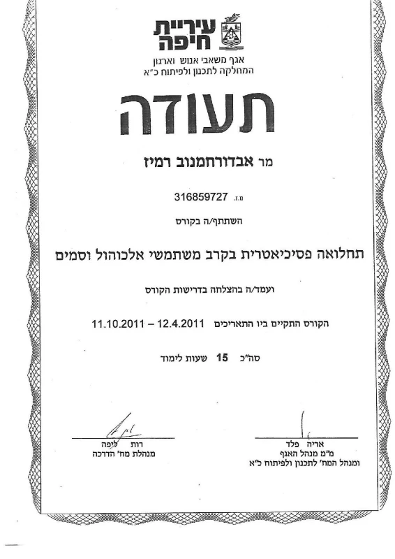 Инструктор при муниципалитете Хайфы и Маалота.
