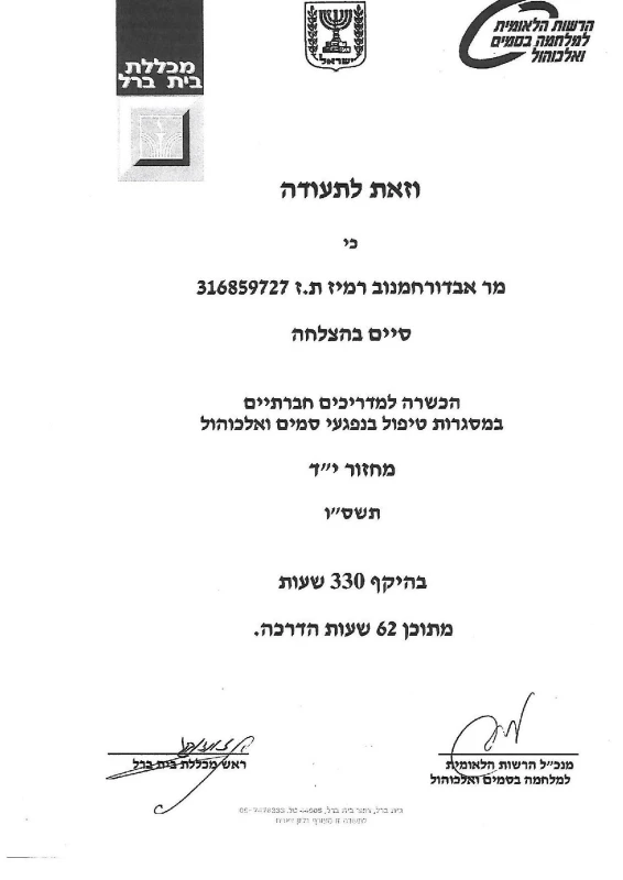 Работа в наркологическом центре в Кирьят Шломо.