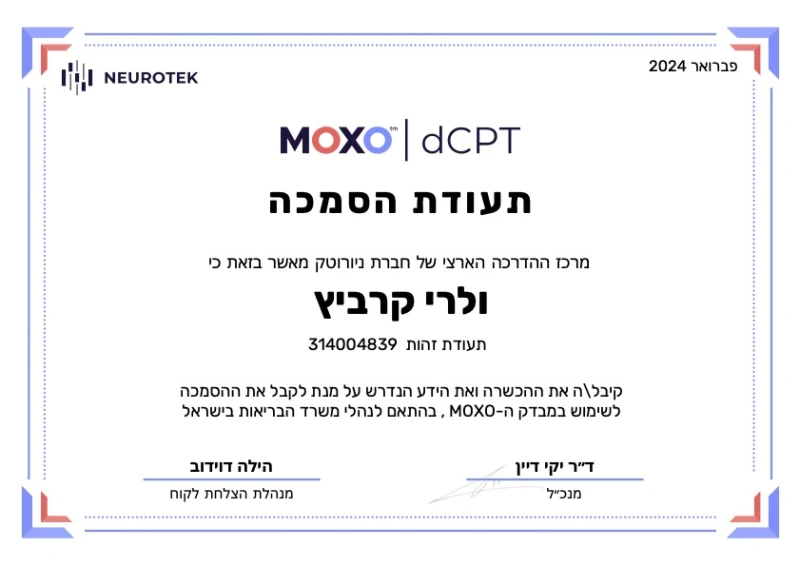 2024 - обучение по проведению теста Моксо (Moxo) и диагностике СДВГ. Израиль